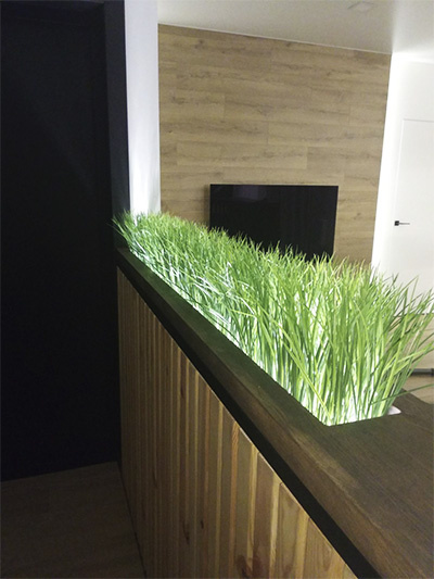 Искусственная трава фейка может служить самостоятельным дизайнерским украшением любого интерьера.